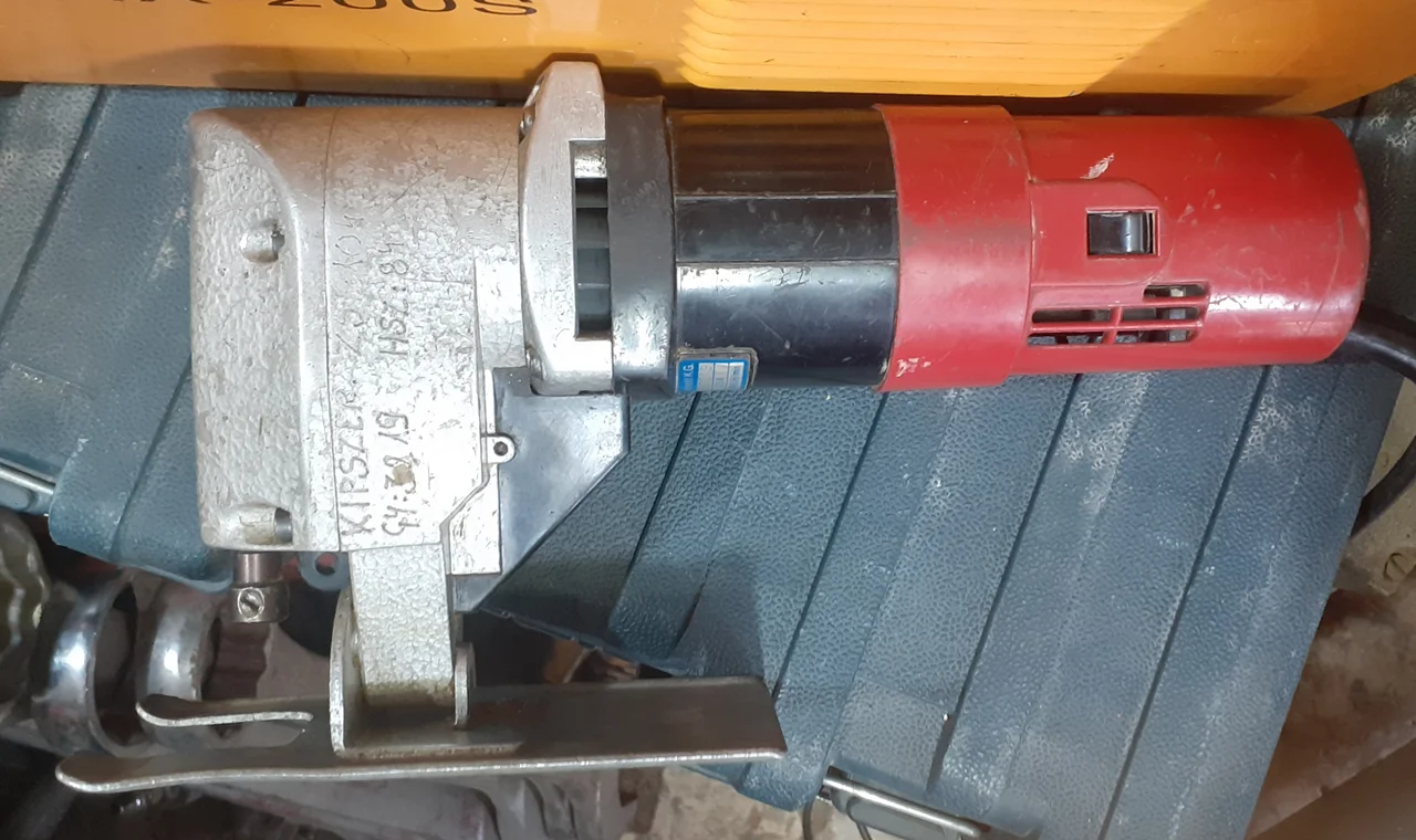 اره عمود بر و قیچی ورق بر دوکاره(هم قابلیت تبدیل شدن به عمود بر و هم قابلیت تبدیل شدن به قیچی ورق بر دارد که قسمتی که تبدیل به ورق بر میشود موجود نمیباشد)دارای گیربکس ۲ سرعته فوق العاده قوی دارای ۵۰۰ وات توان واقعی فوق العاده تمیز و کم کارکرد و فابریک در حد نو(استوک)