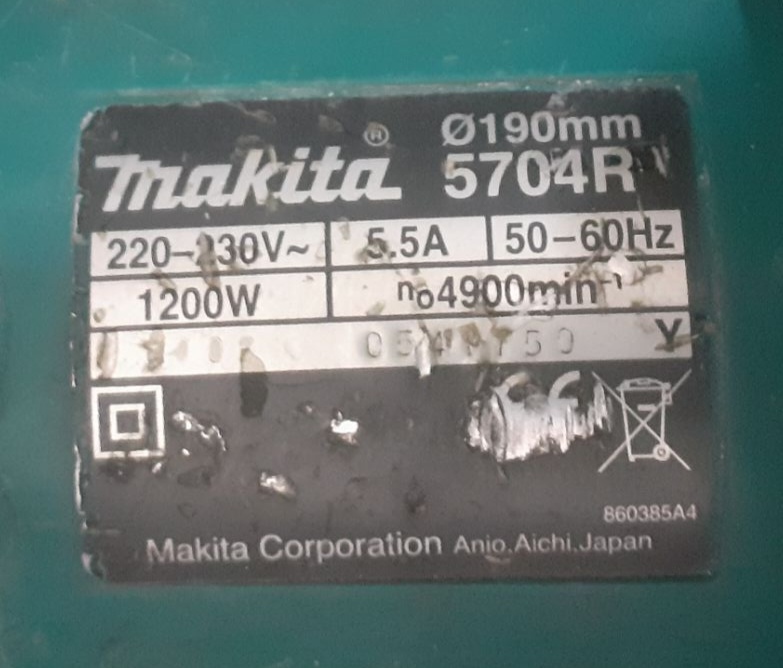 اره دیسکی گرد بر ماکیتا ژاپن اصلی پلاک قرمز سری قدیم سریال خورده(سال ساخت ۲۰۰۶) ۱۲۰۰ وات توان ۱۹۰ میلی متر فابریک و آماده به کار بدون تیغه(استوک)