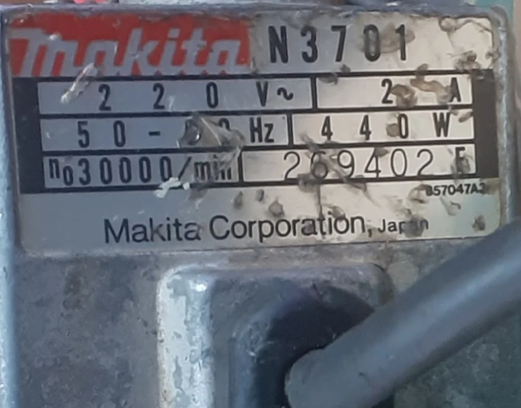 اورفرز نجاری مشتی ماکیتا ژاپن اصلی پلاک آلومینیومی سری قدیم فوق العاده با کیفیت دارای ۴۴۰ وات توان و ۳۰۰۰۰ دو، تمام فابریک و آماده به کار(استوک)