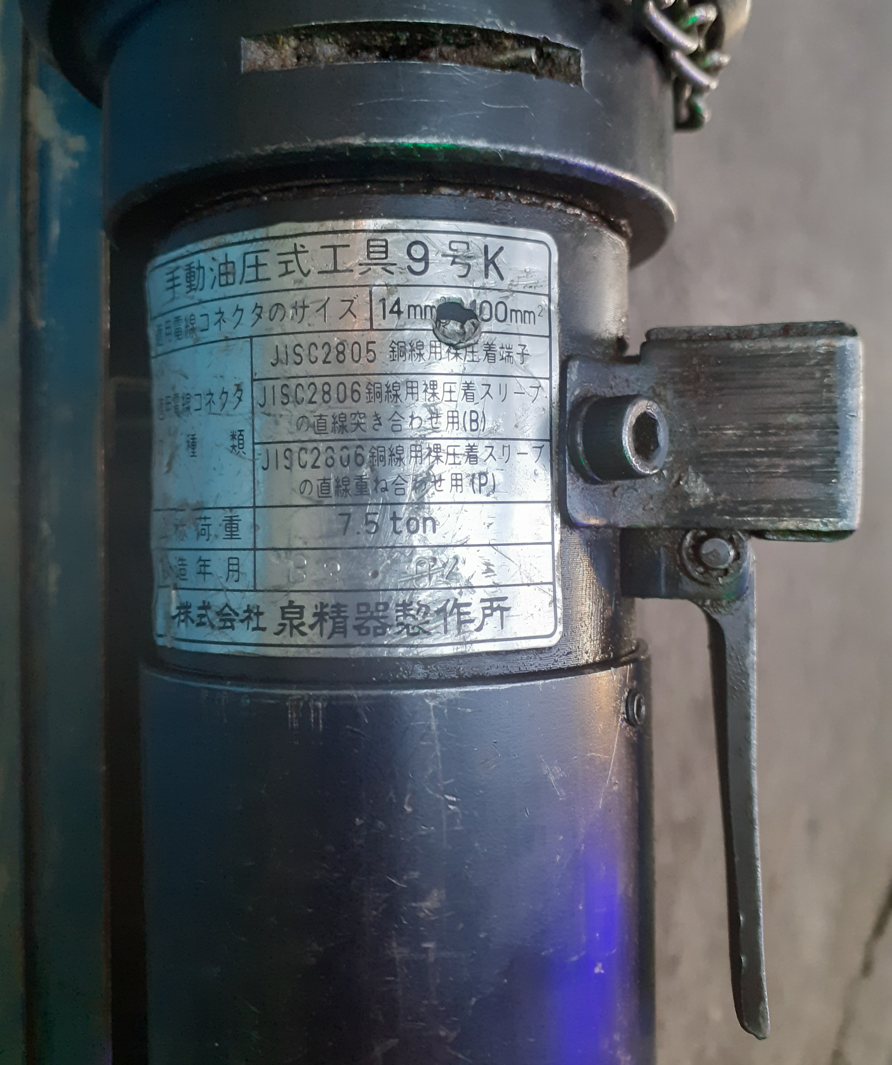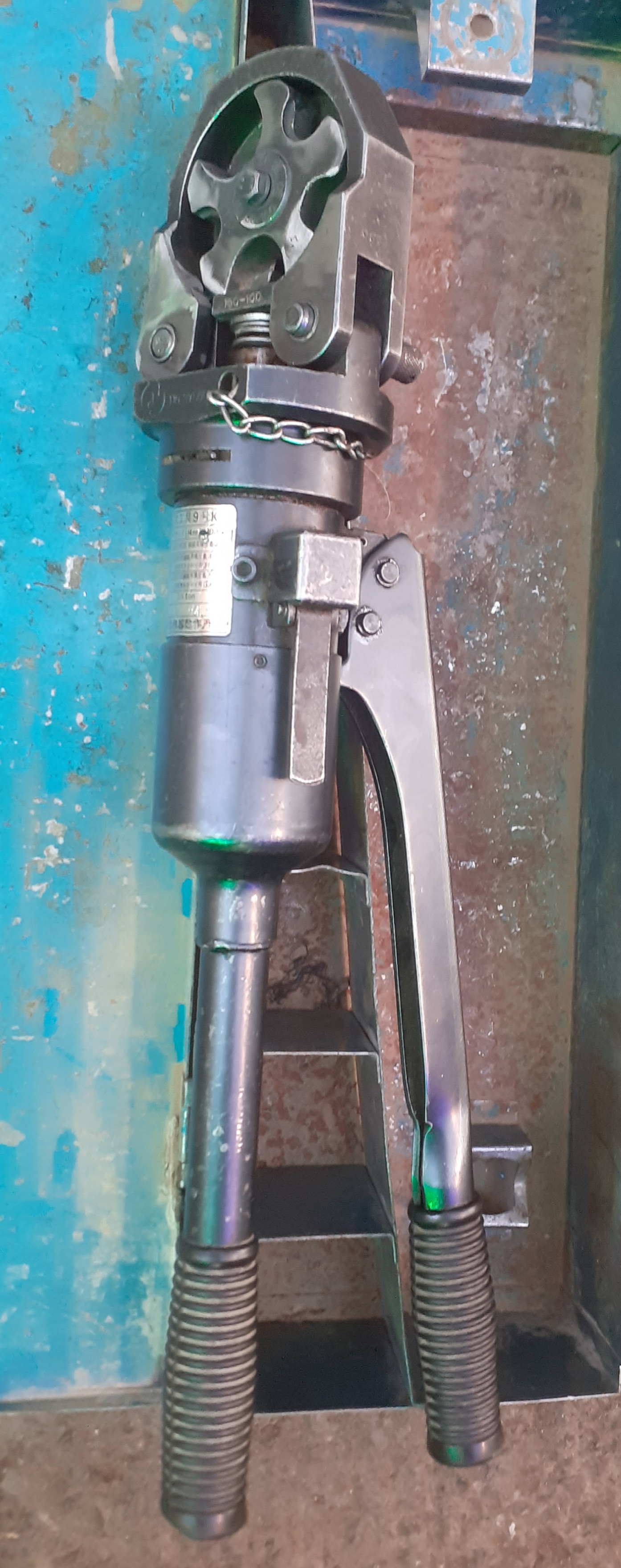 پرس کابلشو هیدرولیک ۱۵۰-۱۴ میلی متر مربع همراه پمپ با قدرت ۷/۵ تن فوجی ژاپن اصلی بسیار عالی با کیفیت و کمیاب فابریک و آماده به کار همراه یک قالب فک پایین که برای تمامی سایزها قابل استفاده است و قالب خورشیدی فک بالا که در ۵ سایز مختلف قابل چرخش میباشد (استوک)