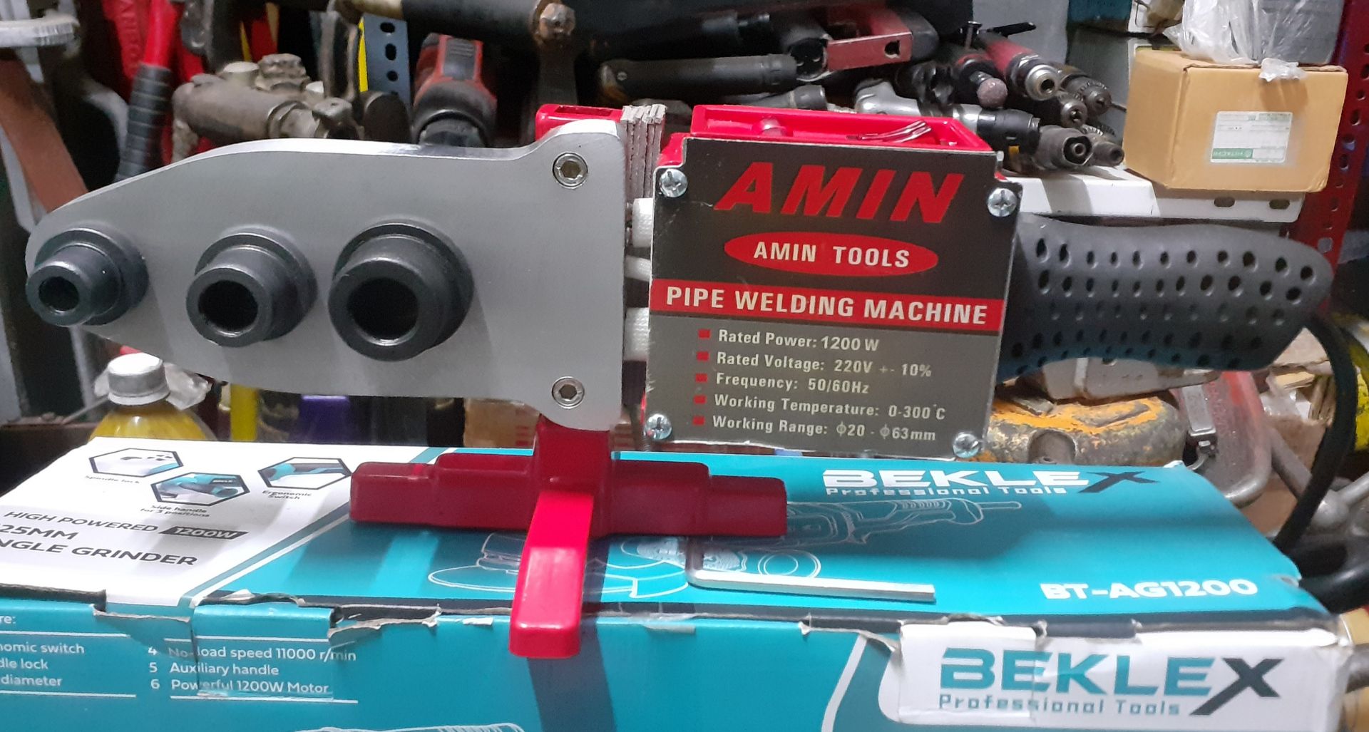 اتو لوله صنعتی 1200 وات دو درجه ای امین تولز همراه لقمه ها و پایه کیفیت بسیار عالی قیمت مناسب