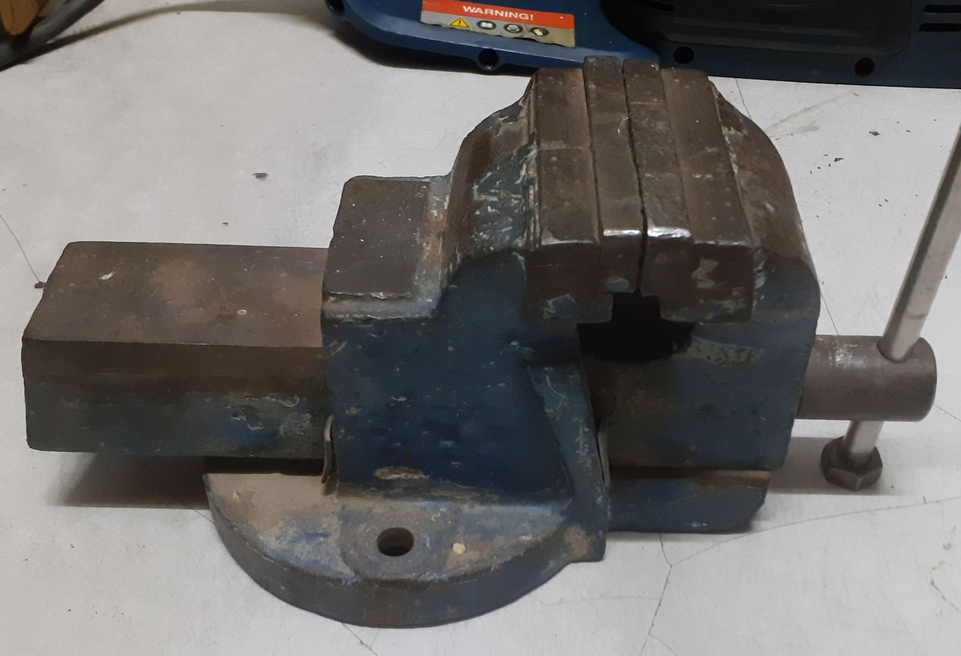 گیره رومیزی چدنی سایز 90(اندازه فک 9 سانت) ساخت شرکت دیاموند بسیار قدیمی و کاملا سالم دارای فک قابل تعویض سالم و آماده به کار(استوک)