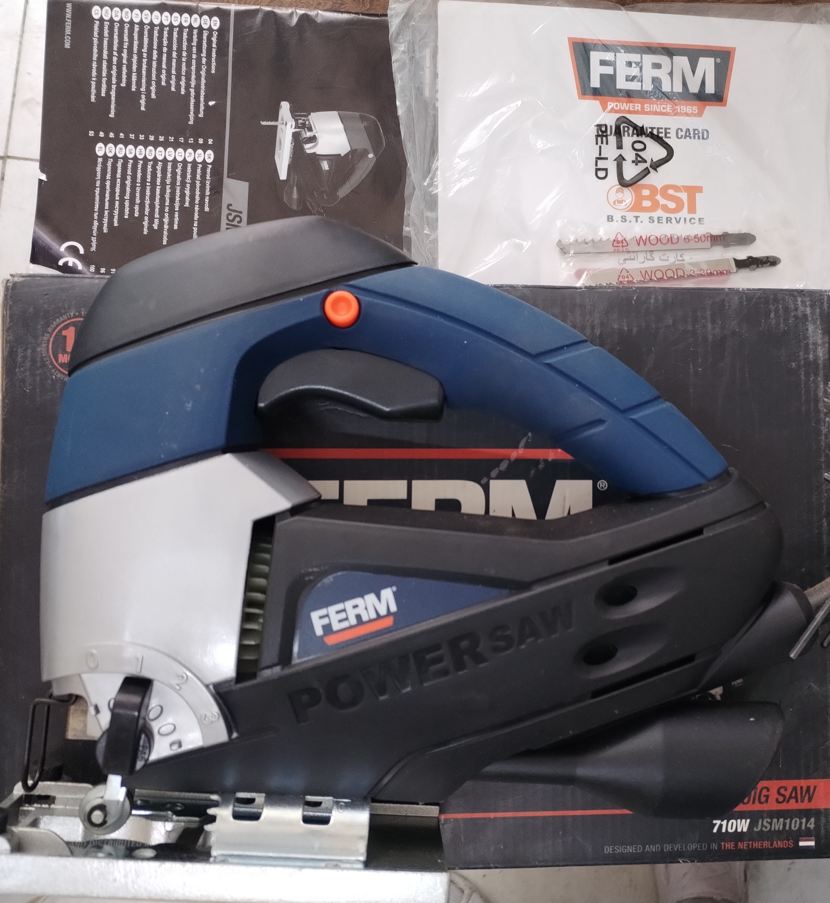 اره عمود بر گیربکسی دیمر دار FERM هلند اصلی فوق العاده عالی و با کیفیت همراه دفترچه راهنما و گارانتی و 3 عدد تیغ برش اصلی و 2 عدد آچار آلن جهت شل و سفت کردن صفحه و کفی زاویه زن مشخصات دقیق تر داخل پلاک عکس