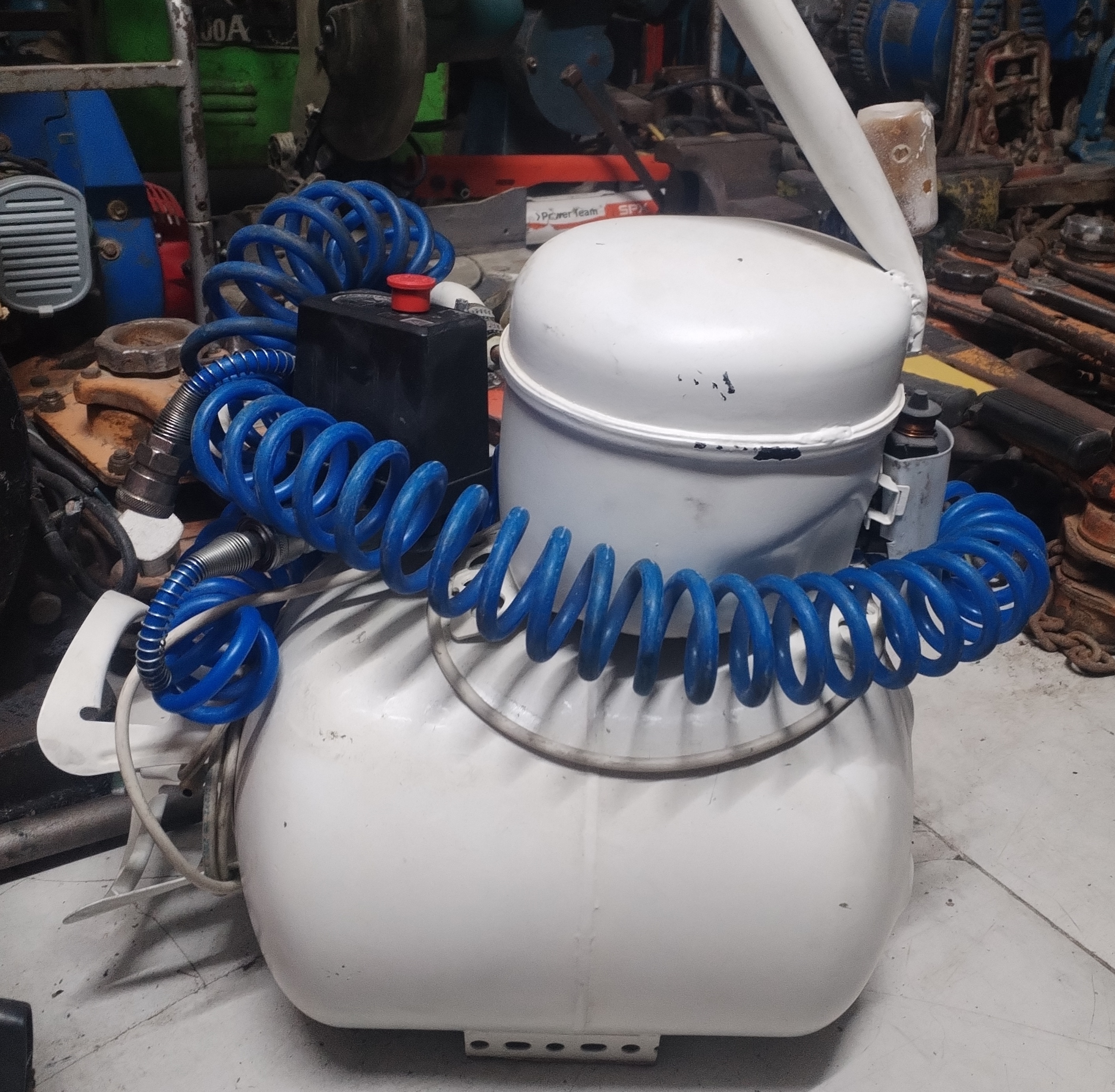 پمپ باد 10 لیتری موتور یخچالی بیصدا اصفهان صنعت همراه شلنگ فنری و کوپلینگ اتصال و دسته جهت سهولت در حمل و نقل بسیار تمیز و کم کارکرد آماده به کار(استوک)