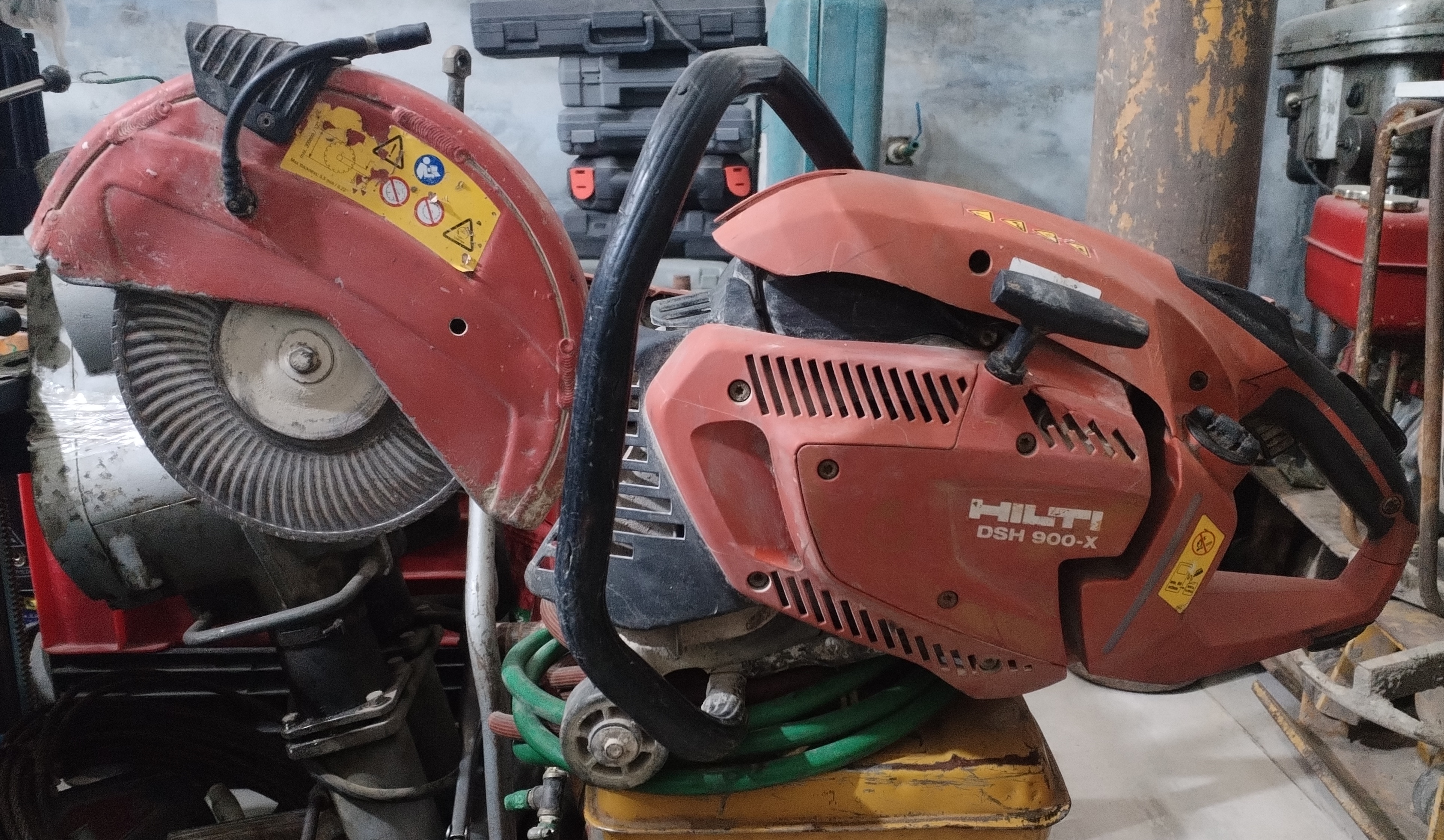 دژبر یا اره نجات یا برش دهنده بنزینی موتور بزرگ(قوی ترین دژبر برند هیلتی) چرخ دار دارای موتور دو زمانه(روغن بنزین) و یک عدد تیغه برش اصلی و شلنگ آب برای خنکاری تیغه مدل DSH 900-X بسیار کم کارکرد تمام فابریک و آماده به کار تک هندل روشن مناسب برای پروژه های سنگین با ساعات کاری بالا(استوک)